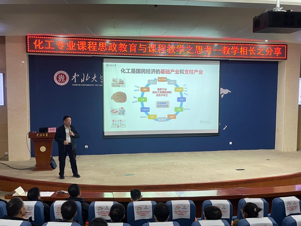 由化学工程与技术学院与党委教师工作部(教师发展中心)共同举办的教学沙龙“化工专业课程思政教育与课程教学之思考---教学相长之分享”活动于2021年11月23日在瑾瑜国际会议中心学术报告厅成功举办。本次教学沙龙主讲嘉宾为中国化工学会首批会士、超重力化工过程山西省重点实验室主任刘有智教授,他担任中国化工学会化工过程强化专业委员会常务副主任,教育部化工类专业教学指导委员会副主任。报告会由院长祁贵生主持,学院全体教师及研究生代表参加了本次活动。