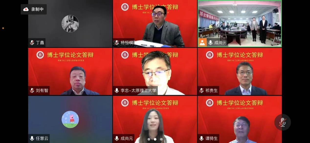 2022年12月3日,在超重力化工过程山西省重点实验室会议室举行了任慧云,张竞文两位同学的博士学位答辩会,答辩委员会主席为太原理工大学李忠教授,答辩委员有山西大学杨恒权教授、中国科学院山西煤化所谭猗生研究员、中北大学刘有智教授、中北大学祁贵生教授、中北大学焦纬洲教授,答辩秘书为中北大学成尚元。