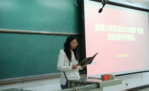 随后李雪凡同学作为新生代表发言,表示加入超重力大家庭,对超重力技术的了解,还有对实验室的所学感想,以及说了未来三年的研究生生活规划,如今已经步入研究生生活的我们更应该把握这样的机会,向师者学习,为人生扬帆。